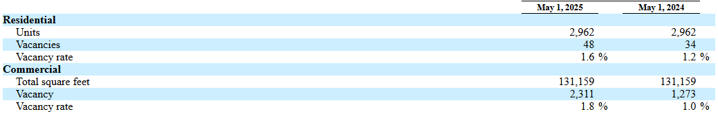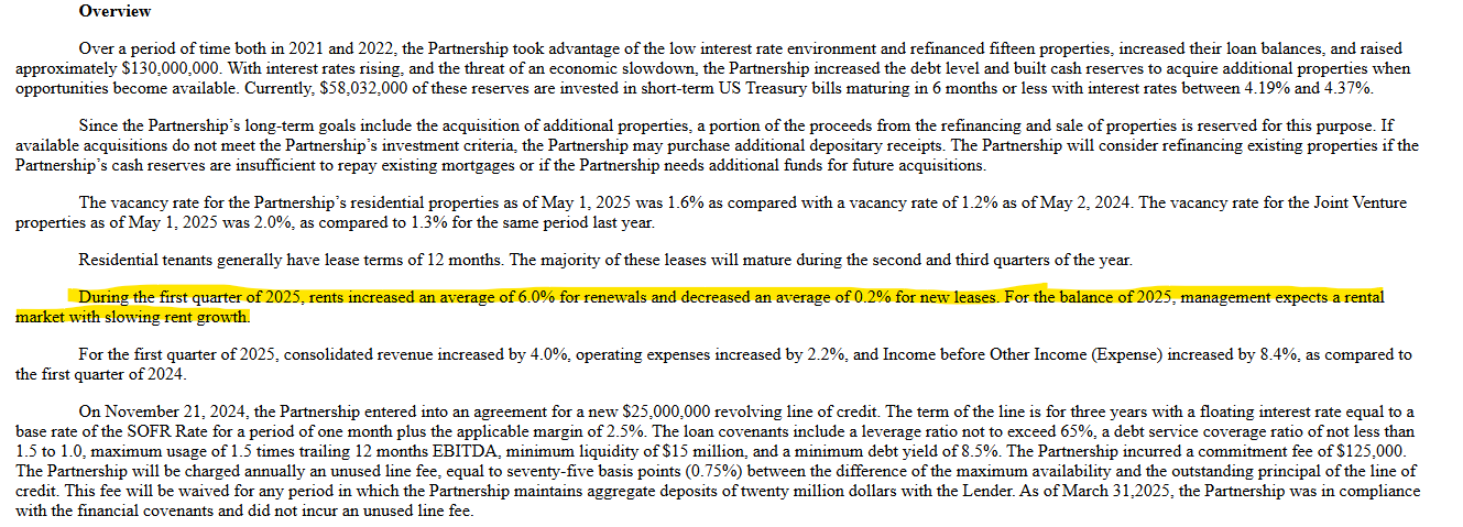 NEN’s 1Q2025 earnings reflect continued solid results. Vacancies remain low at 1.6% with rent growth of 4% YOY.